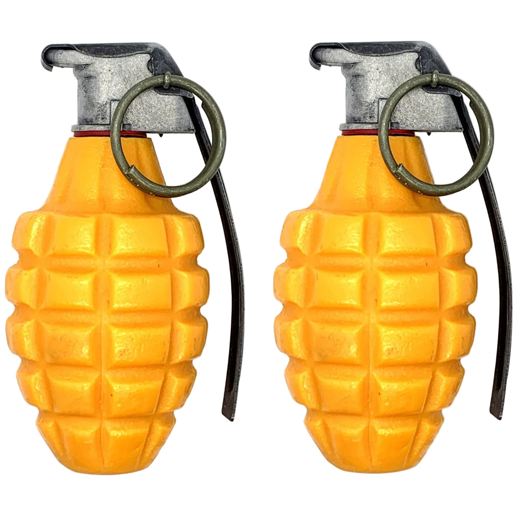 Each complete grenade weighs approximately 8 ounces. These are inert display pieces and not intended for throwing or pyrotechnic use. Suitable for museum displays, film and theater props, reenactment gear, and costume impressions where authentic appearance is needed but live ordnance is prohibited.